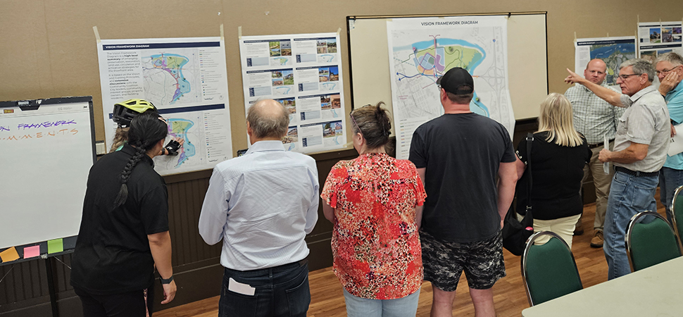 Over the past year, the City's project team has prepared a draft Vision Framework Diagram and a series of emerging concepts for both the Northern and Southern Riverfronts.